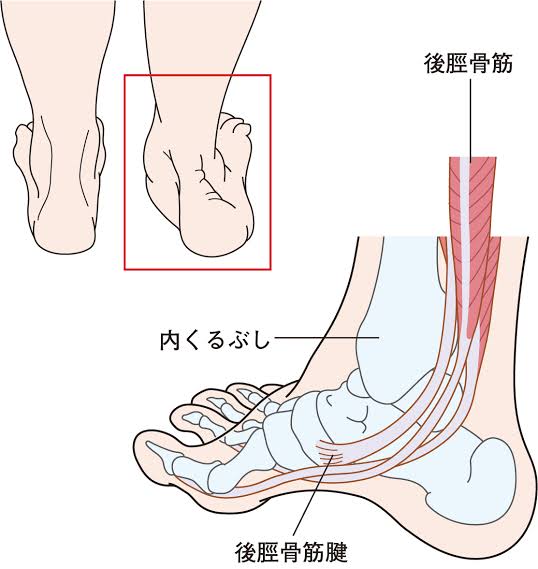 後脛骨筋腱炎とは内くるぶしのすぐ後ろから下を通る、後脛骨筋腱炎が繰り返し負担がかかり炎症を起こすものです。