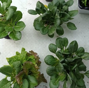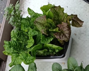 冬の間は外に出たくないので、自宅のサンルームで水耕栽培に挑戦。土を使わず、スポンジと液体肥料を使ってサニーレタスと小松菜と春菊を種から、茎ブロッコリーを苗から育てています。思いのほかうまくいって、写真のとおりたくさん育ちました。